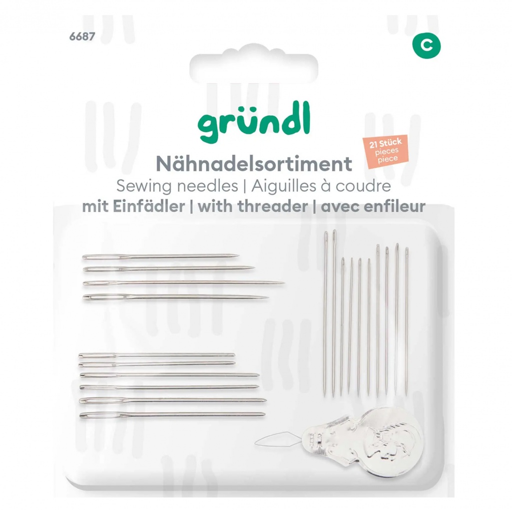 Komplet šivank zavzema set treh različnih igel z vdevalecem .